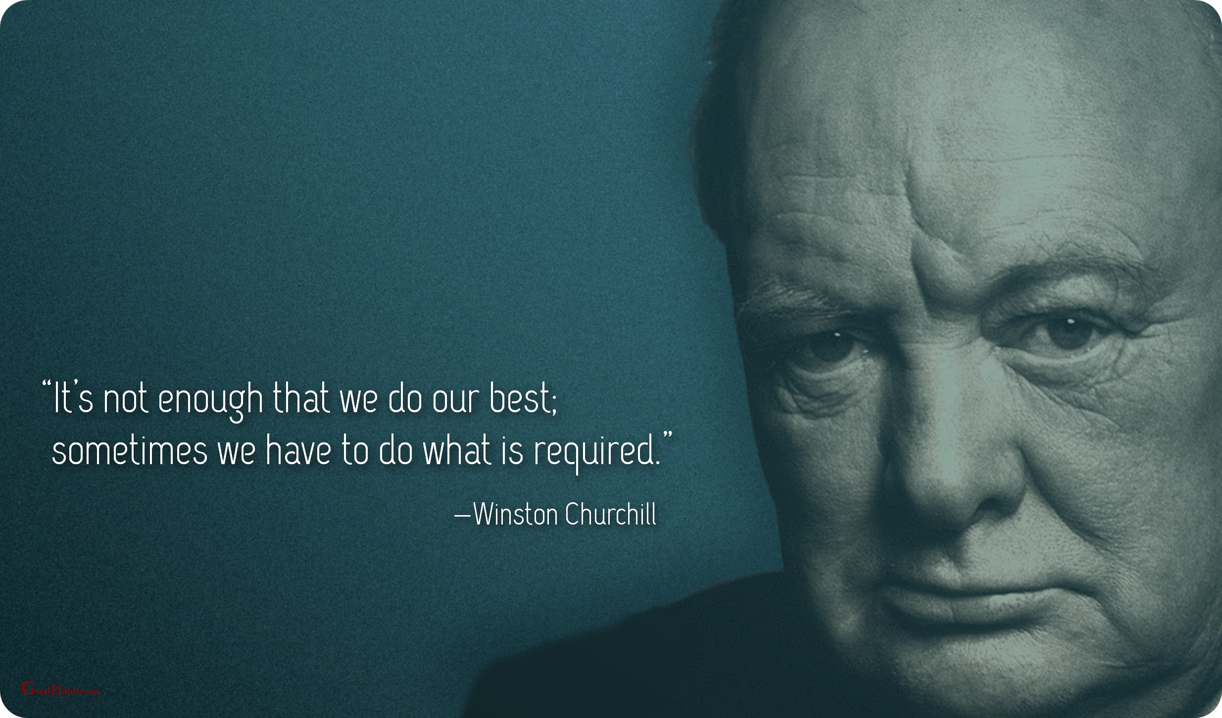 Success Quote – July 27, 2016 Posted on July 27, 2016 by Paul Mark Sutherland Reply “It is no use saying, ‘We are doing our best.’ You have got to succeed in doing what is necessary.” –Winston Churchill ________________________ Enjoy today. Achieve today. Tomorrow is promised to no one! graphic credit: unknown Share this: Click to share on Facebook (Opens in new window) Facebook Click to share on X (Opens in new window) X Click to share on LinkedIn (Opens in new window) LinkedIn Click to share on Pinterest (Opens in new window) Pinterest Click to share on Reddit (Opens in new window) Reddit Click to email a link to a friend (Opens in new window) Email More Click to print (Opens in new window) Print Like Loading...