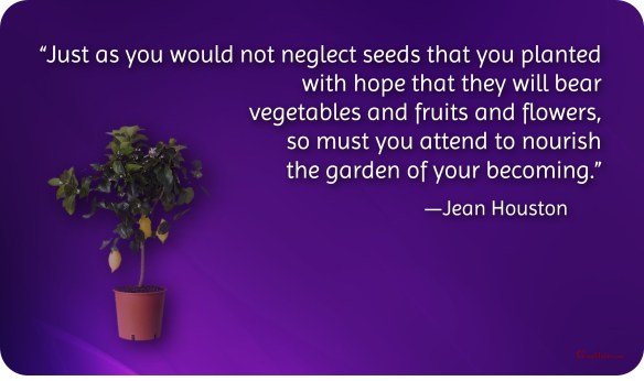 “Just as you would not neglect seeds that you planted with hope that they will bear vegetables and fruits and flowers, so must you attend to nourish the garden of your becoming.”