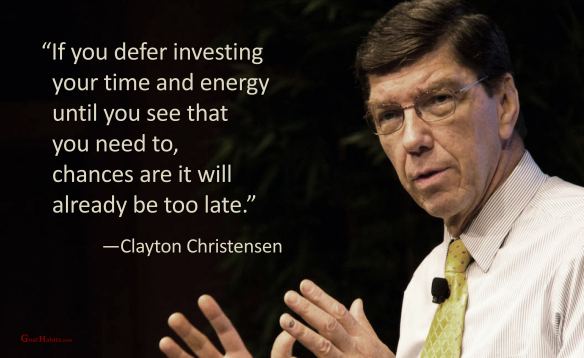 Success Quote on Preparation Posted on May 16, 2023 by Paul Mark Sutherland Reply “If you defer investing your time and energy until you see that you need to, chances are it will already be too late.” ―Clayton Christensen ________________________ Enjoy today. Achieve today. Tomorrow is promised to no one! original graphic credits: unknown Share this: Share on Facebook (Opens in new window) Facebook Share on X (Opens in new window) X Share on LinkedIn (Opens in new window) LinkedIn Share on Pinterest (Opens in new window) Pinterest Share on Reddit (Opens in new window) Reddit Email a link to a friend (Opens in new window) Email More Print (Opens in new window) Print Like Loading...