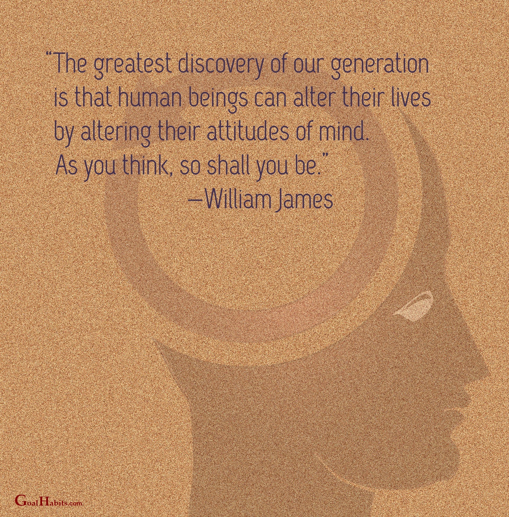 “The greatest discovery of our generation is that human beings can alter their lives by altering their attitudes of mind. As you think, so shall you be.”