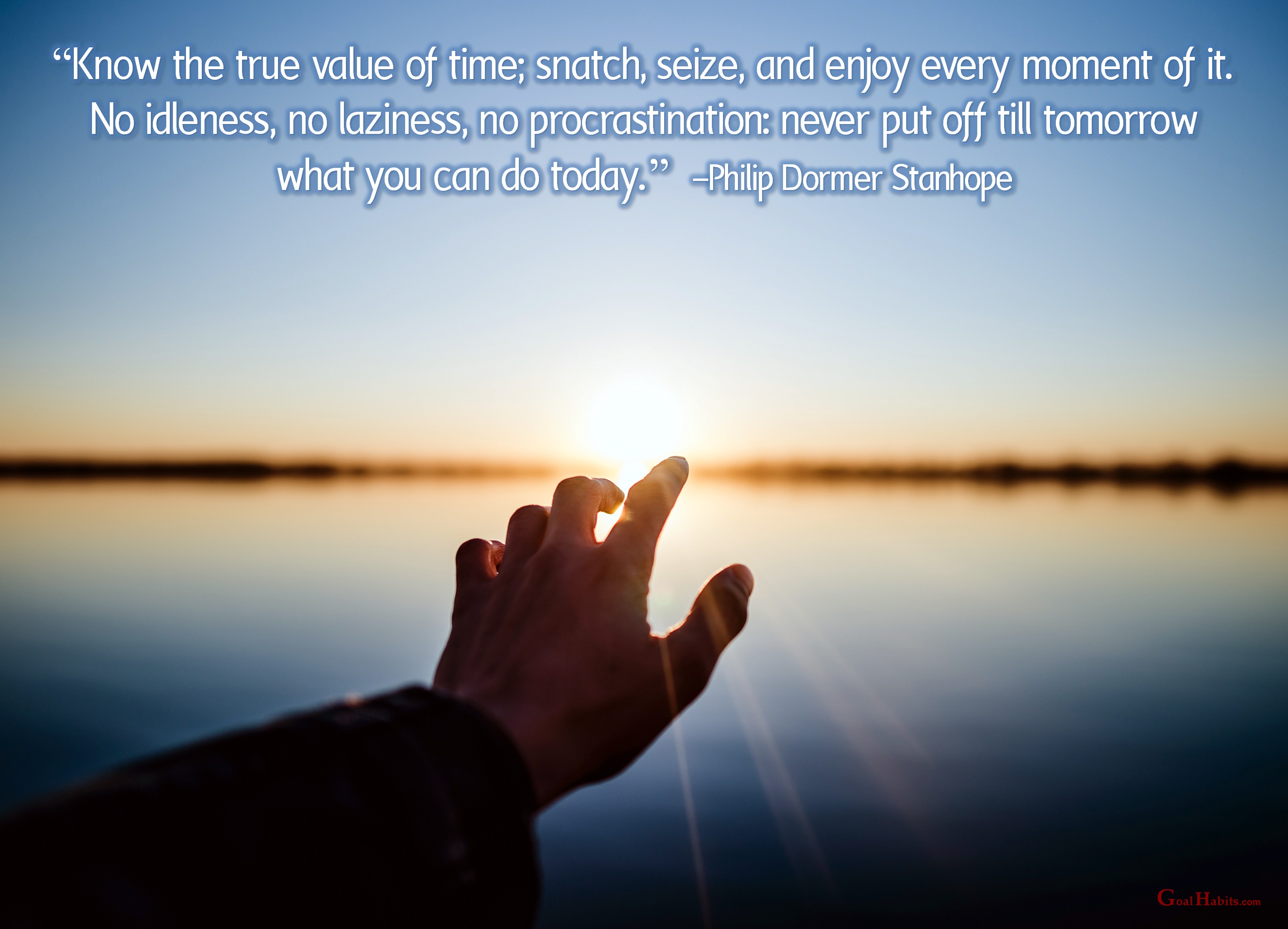 “Know the true value of time; snatch, seize, and enjoy every moment of it. No idleness, no laziness, no procrastination: never put off till tomorrow what you can do today.”