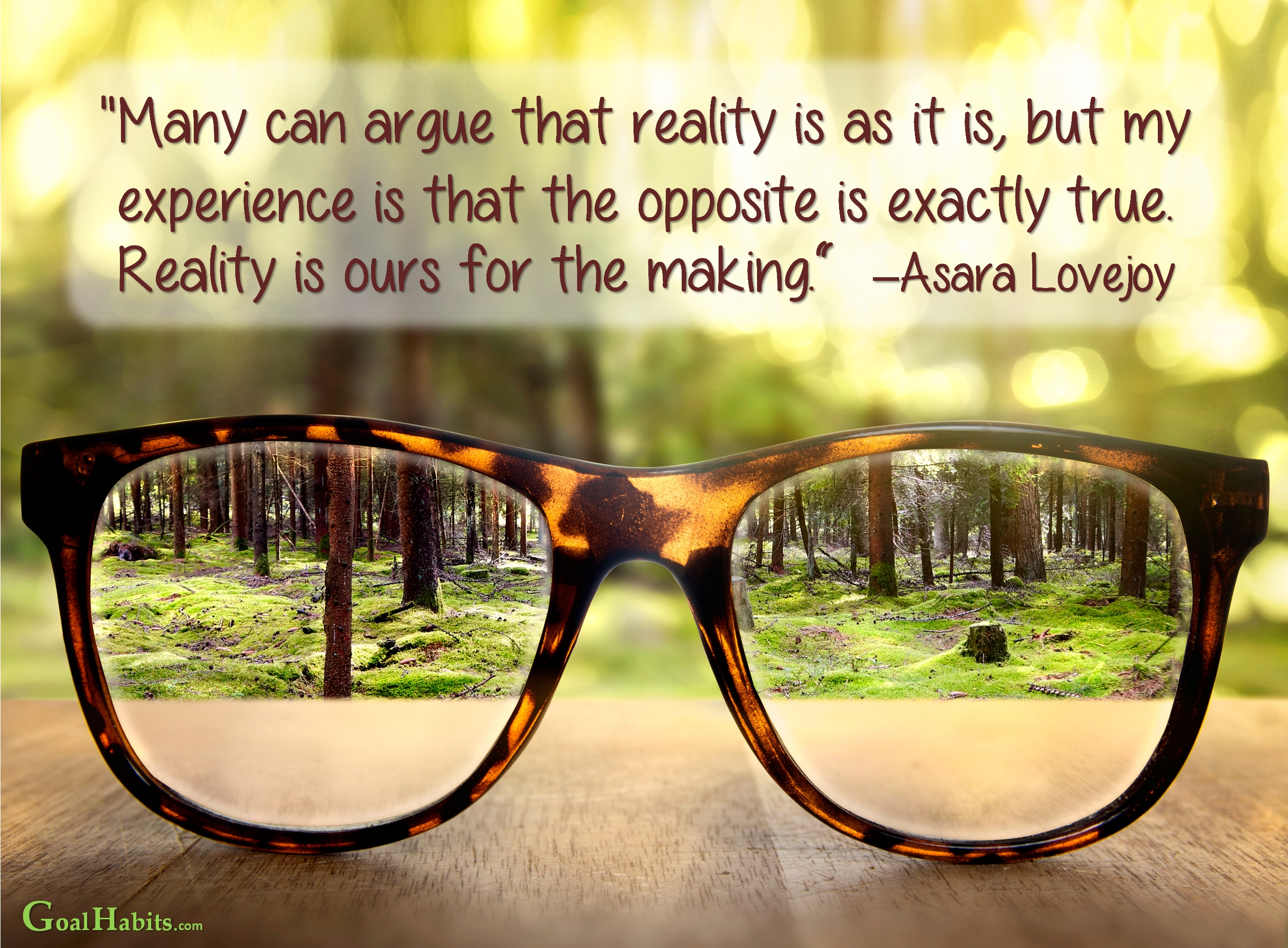 “Many can argue that reality is as it is, but my experience is that the opposite is exactly true. Reality is ours for the making.”