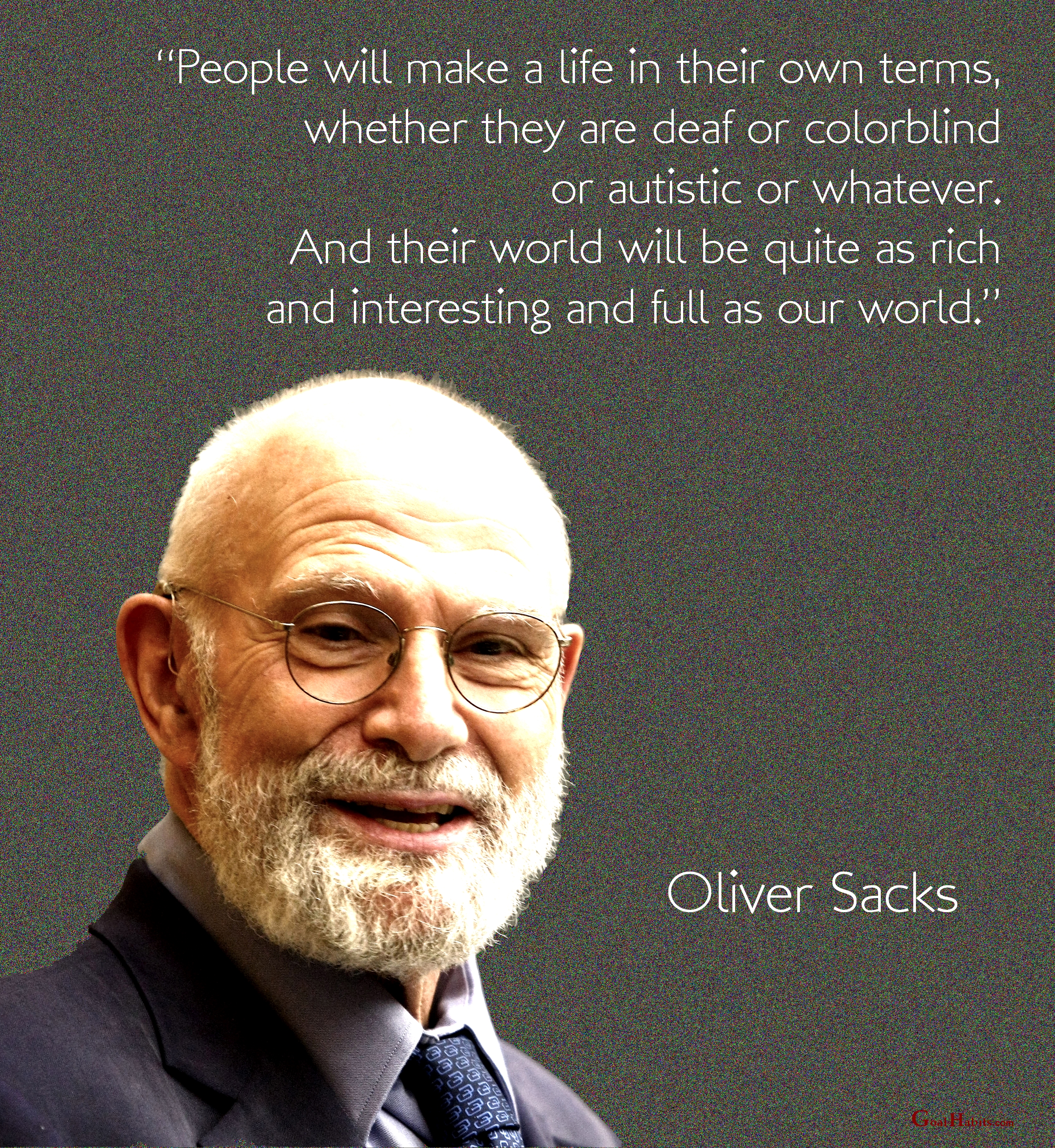 “People will make a life in their own terms, whether they are deaf or colorblind or autistic or whatever. And their world will be quite as rich and interesting and full as our world.”