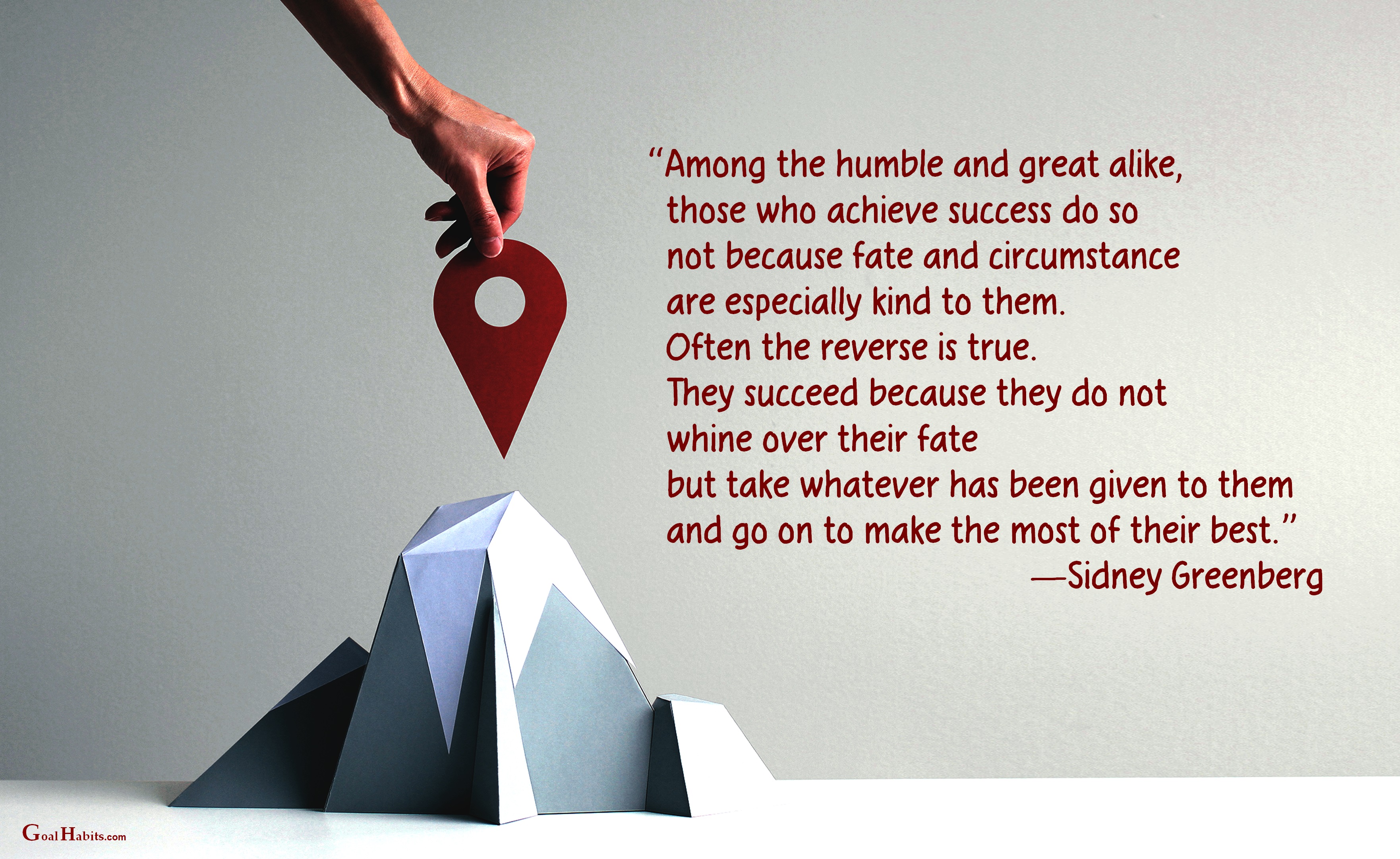 “Among the humble and great alike, those who achieve success do so not because fate and circumstance are especially kind to them. Often the reverse is true. They succeed because they do not whine over their fate but take whatever has been given to them and go on to make the most of their best.”