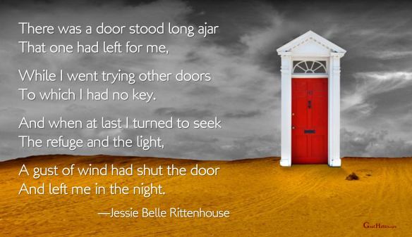 “What is opportunity, and when does it knock? It never knocks. You can wait a whole lifetime, listening, hoping, and you will hear no knocking. None at all. You are opportunity, and you must knock on the door leading to your destiny. You prepare yourself to recognize opportunity, to pursue and seize opportunity.”