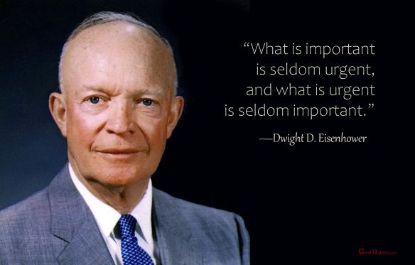 Success Quote on Time Management Posted on March 27, 2023 by Paul Mark Sutherland Reply “What is important is seldom urgent, and what is urgent is seldom important.” —Dwight D Eisenhower ________________________ Enjoy today. Achieve today. Tomorrow is promised to no one! original graphic credit: unknown Share this: Click to share on Facebook (Opens in new window) Facebook Click to share on X (Opens in new window) X Click to share on LinkedIn (Opens in new window) LinkedIn Click to share on Pinterest (Opens in new window) Pinterest Click to share on Reddit (Opens in new window) Reddit Click to email a link to a friend (Opens in new window) Email More Click to print (Opens in new window) Print Like Loading...