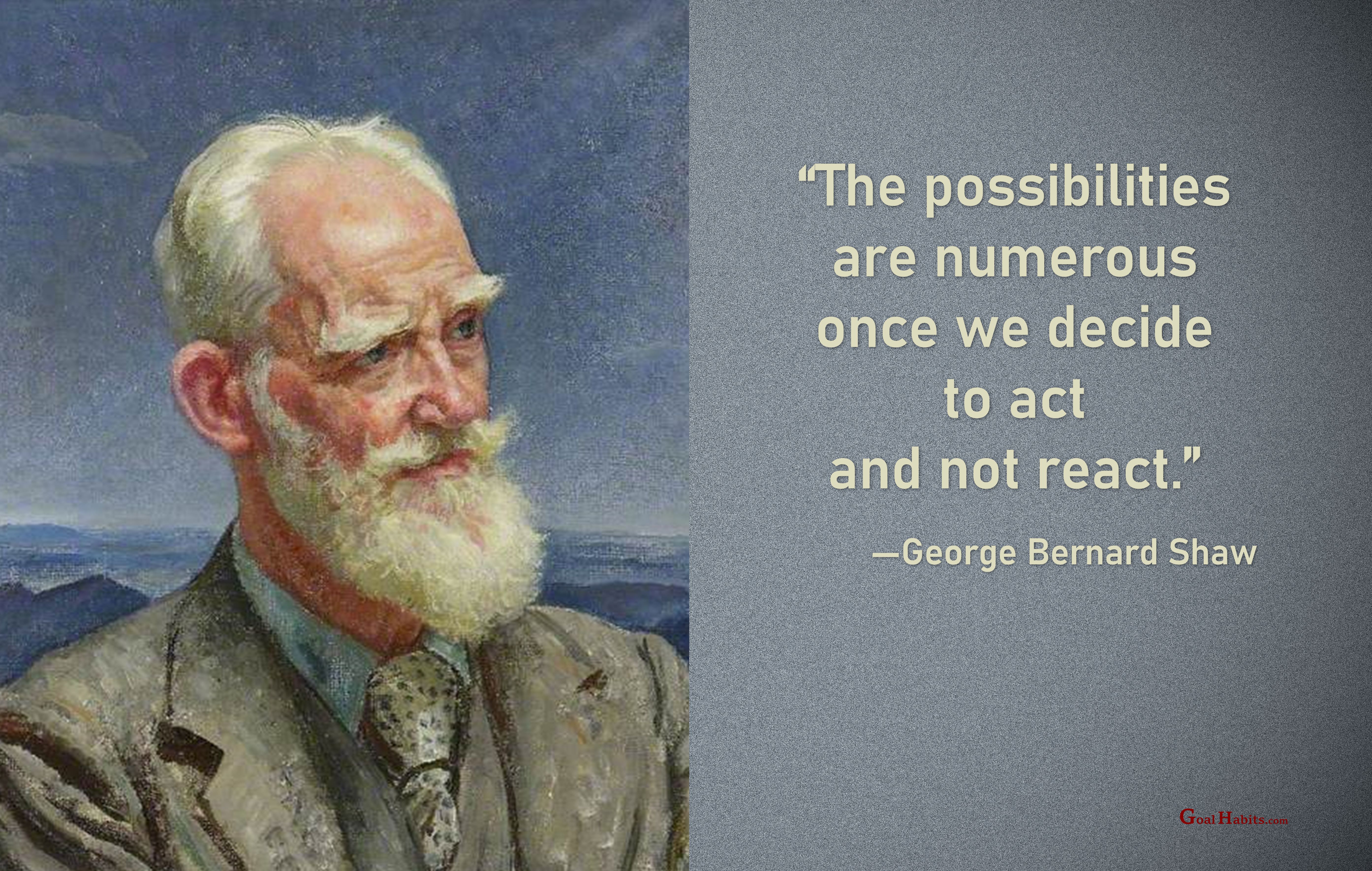 Success Quote on Action Posted on July 3, 2023 by Paul Mark Sutherland Reply “The possibilities are numerous once we decide to act and not react.” —George Bernard Shaw ________________________ Enjoy today.Achieve today.Tomorrow is promised to no one! original graphic credit: unknown Share this: Click to share on Facebook (Opens in new window) Facebook Click to share on X (Opens in new window) X Click to share on LinkedIn (Opens in new window) LinkedIn Click to share on Pinterest (Opens in new window) Pinterest Click to share on Reddit (Opens in new window) Reddit Click to email a link to a friend (Opens in new window) Email More Click to print (Opens in new window) Print Like Loading...